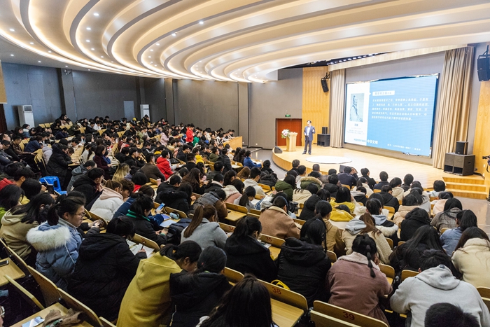 3月5日晚,新学期的德业大讲堂“书香校园”系列讲座开讲。校长陈光亭应邀成为本学期的首讲嘉宾,为师生作《数学:人类文明发展的一面镜子》专题讲座。校纪委书记吴国庆及椒江校区近400名师生代表聆听了讲座,现场济济一堂,气氛热烈。