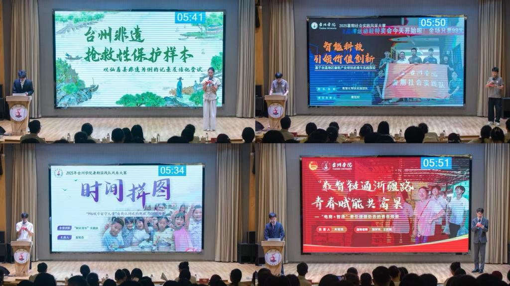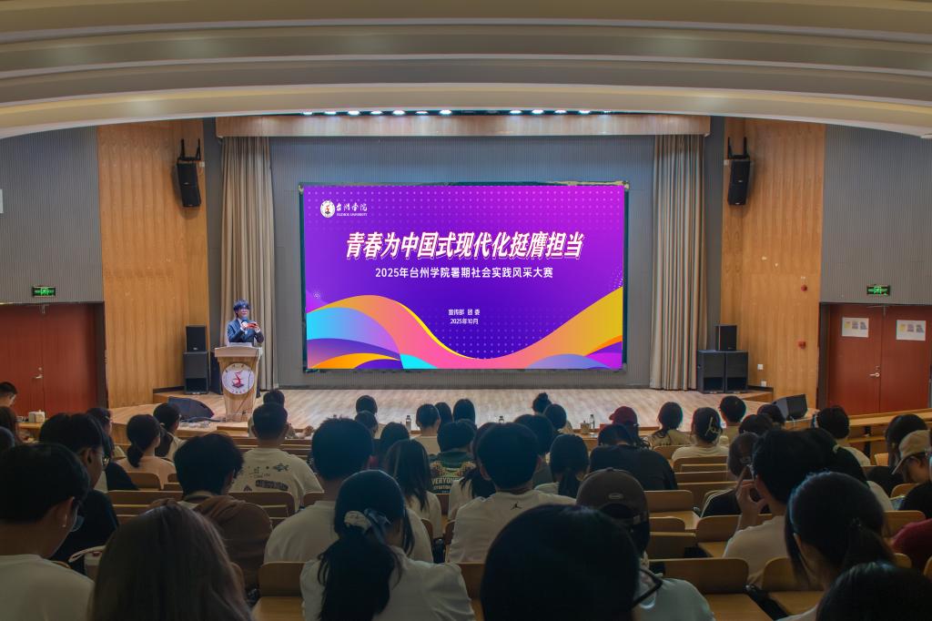 10月16日,台州学院2025年暑期社会实践风采大赛在椒江校区学生活动中心成功举行。椒江团区委书记曹娅萍,校团委书记潘垚,校宣传部(教师工作部)副部长翁添富,药学院党总支副书记高阳等受邀担任评委,各二级学院分团委书记、实践队指导老师及学生代表参与本次活动。