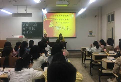 为深入贯彻落实十九大精神,积极投身学校“一三五”发展目标和学院跨越式发展,4月19日晚,教师教育学院党总支在3208教室举行业余党校第二十三期培训班开学典礼。校党委委员、组织部长李大兴教授应邀为学员作《科学实践党的根本宗旨》专题党课;学院党支书记金台政作开班讲话,55名学员参加典礼。