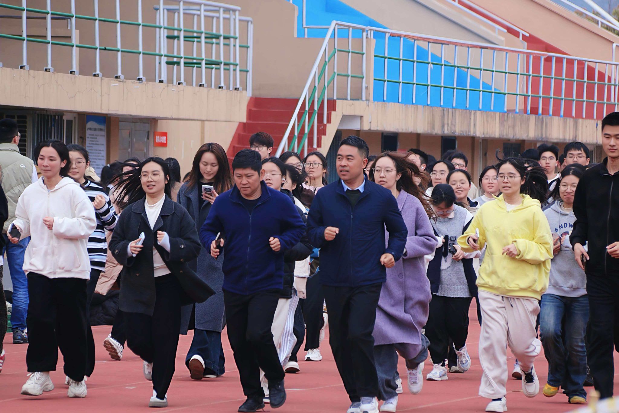 王胜则结合教育部与学校新春第一会的要求,向同学们提出了三点期望:一是积极投身,以主人翁姿态参与活动,让跑步成为校园生活新风尚;二是持之以恒,克服惰性、挑战自我,将21天跑步习惯延续为长期自觉,以强韧体魄支撑远大理想;三是科学参与,根据个人体质合理安排强度,安全运动、健康第一。随后,王胜宣布马克思主义学院第三届“阳光长跑·‘马’上行动”乐动打卡活动正式开启。随着一声令下,百余名师生精神饱满地冲出起跑线,红色跑道上跃动的身影,成为春日校园最生动的风景。